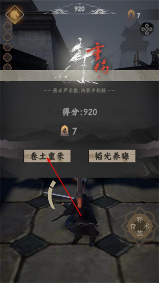4、若挑战失败,点击卷土重来按钮,重新开始跑酷挑战,不断提升自己的跑酷技巧和得分。