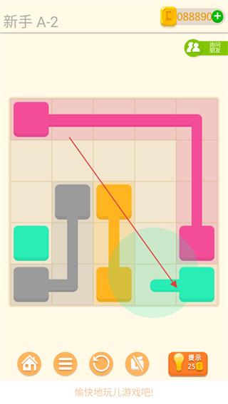 3、依次连接所有颜色的方块对,完成整个网格的连线后,即可通关。
