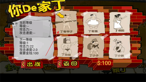 4、点击你De家丁界面,选家丁出战,可花费金钱升级家丁提升战力。
