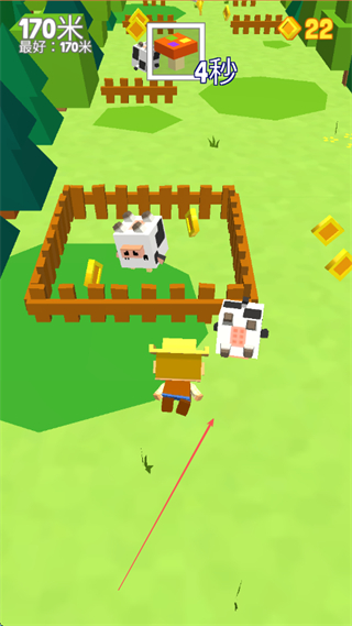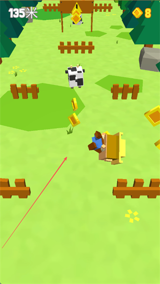 2、将奶牛赶进围栏,完成任务可获得金币奖励,同时注意收集途中的道具。