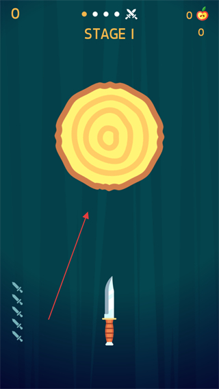 3、STAGE2木盘有飞刀,瞄准空隙发射,让飞刀成功插入。