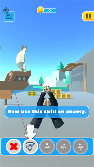 2、进入关卡后,根据提示点击风系技能图标,启用风系忍术技能。