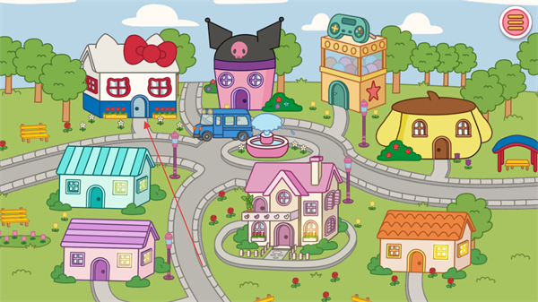 1、可进入凯蒂猫、酷洛米等不同角色的特色房屋,每栋房屋风格迥异,在不同房屋中能体验专属场景互动。