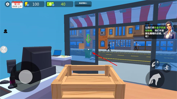3、苹果放置完毕后,将空木箱移动至垃圾桶处并扔进垃圾桶。