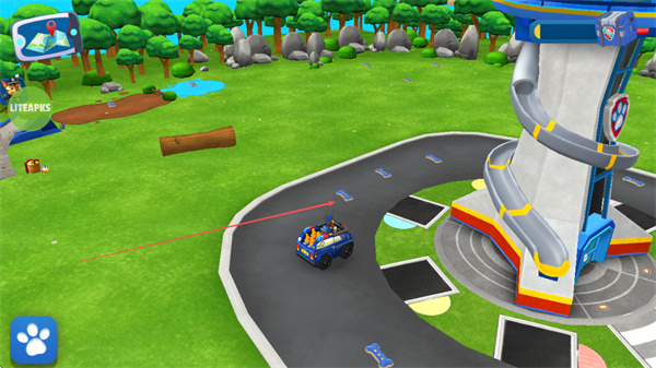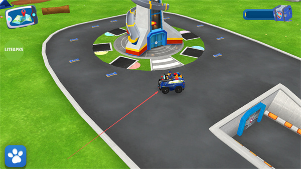 1、操控汪汪队车辆在基地道路上行驶,熟悉移动操作。