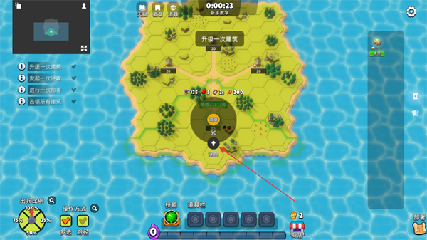 1、在岛屿上升级建筑,提升史莱姆部队实力,积累资源。
