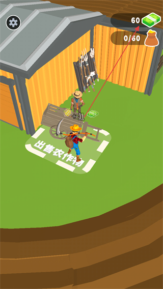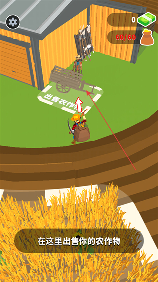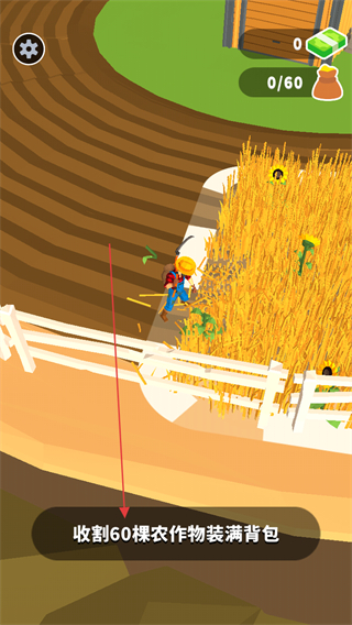 1、在农田中操控角色收割农作物,目标是收割60棵农作物装满背包。