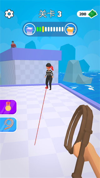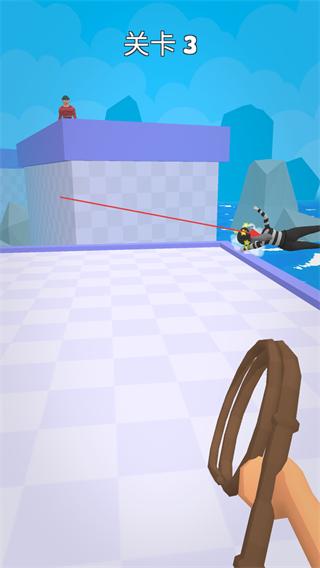 1、在关卡3中,用皮鞭瞄准目标人物,发射皮鞭将其缠住。