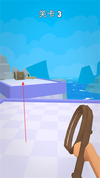 4、最终瞄准宝箱,用皮鞭获取宝箱,完成关卡3。