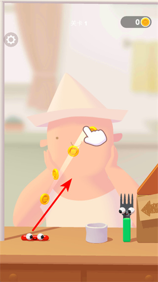 3、游戏中利用叉子等道具的助力,让小虫沿箭头方向跳跃,跳跃时需把握时机,确保小虫能安全到达目标位置。