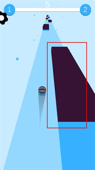 2、游戏中通过点击屏幕控制小球左右移动,躲避紫色的障碍物。
