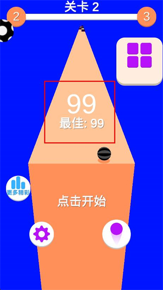 4、成功通过当前关卡后,可以查看获得的分数,点击开始即可继续游戏。