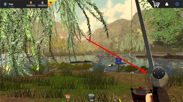 1、操控右侧旋钮调整鱼竿角度,选择合适的水域抛投钓饵,抛投前需观察水域环境,寻找鱼群聚集的区域,提升中鱼概率。