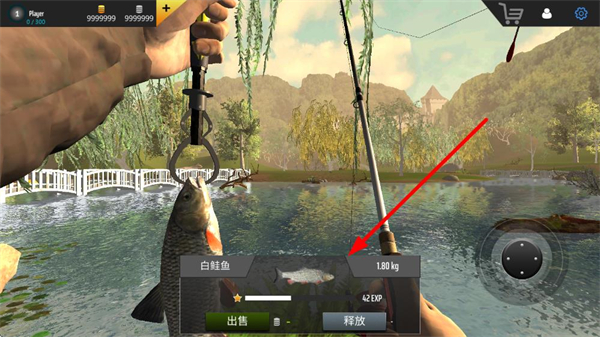 4、成功钓起鱼后可查看鱼的种类与重量,选择出售获取金币,用于购买更高级的钓饵、钓具,或释放鱼类积累垂钓经验。