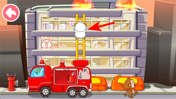 3、遇到高层被困动物时,操控救援角色爬上消防梯,逐层接近被困目标,注意保持攀爬节奏,确保顺利到达被困动物所在楼层,实施救援行动。