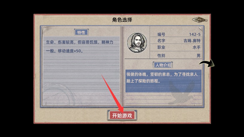 2、选择适合的角色并查看详细背景故事,确认后正式开启生存挑战完整之旅。