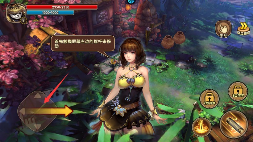3、滑动左下角的虚拟摇杆控制角色移动方向,灵活走位以应对各种战斗情境挑战。