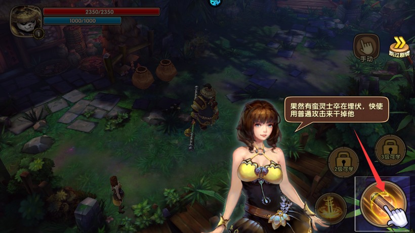 4、点击右下角按钮发动普通攻击操作,对敌人造成伤害并积累技能释放所需能量。
