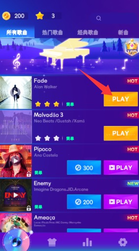 1、在音乐库中选择想要演奏的曲目,根据难度提示挑选适合自己水平的乐曲开始挑战。
