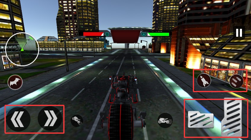 4、左侧按键控制左右移动方向,右侧负责倒车前进,上方按键用于发动攻击。