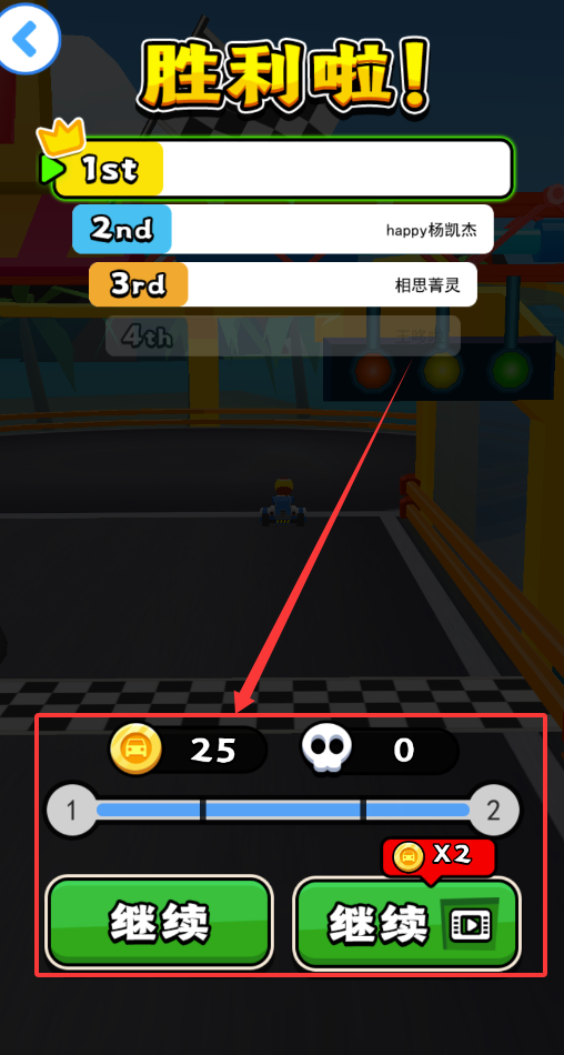 2、比赛过程中要时刻关注赛道状况,合理使用漂移技巧过弯,收集随机出现的加速道具或干扰道具。