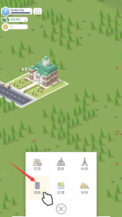 2、在建筑菜单中选择道路分类选项进入,为城市发展铺设基础交通网络系统。