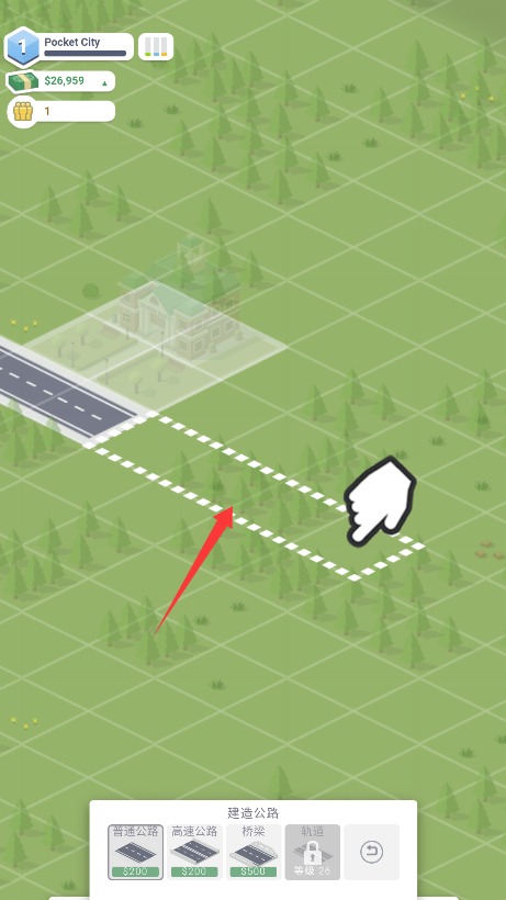 3、选择地图上的空闲区域进行施工建造,通过拖动绘制理想的道路线路布局。