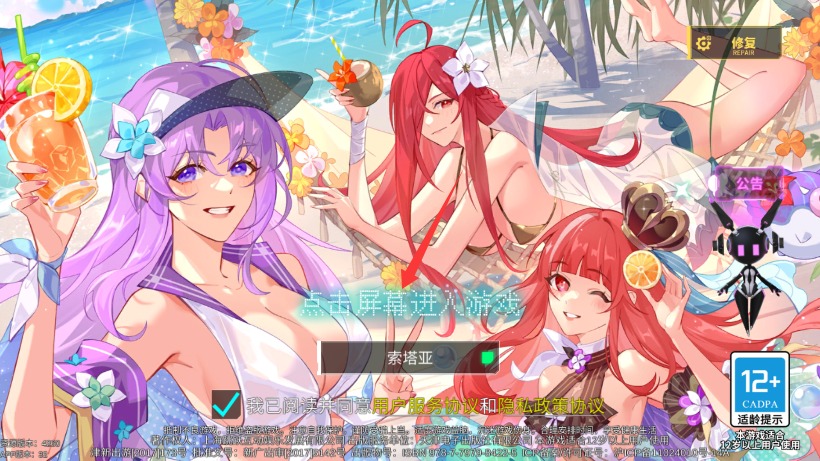 1、初次启动游戏后轻触屏幕任意位置,即可进入这片二次元风格的竞技对战战场。