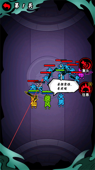 3、触发技能特效,包裹敌方文字完成击败,推进关卡胜利进度。