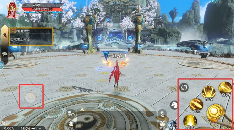 4、进入游戏后使用左侧摇杆控制移动方向,右侧技能栏释放各类招式攻击法术。