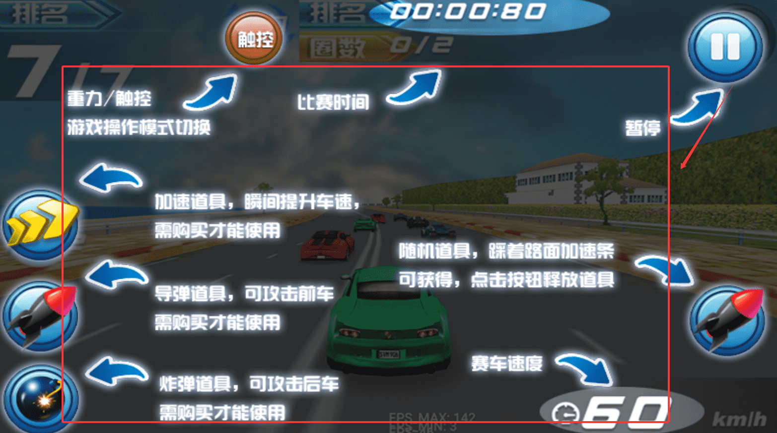 2、多元操作方案支持重力感应与触屏操控自由切换,三指触控布局可同时实现方向控制与道具释放,自定义按键位置与灵敏度满足不同操作。