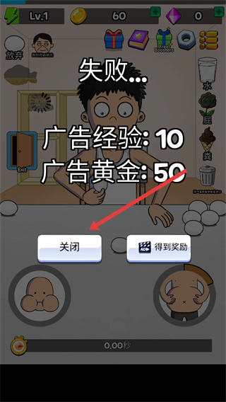 4、结束未完成目标,会显示失败,点击关闭重新挑战。