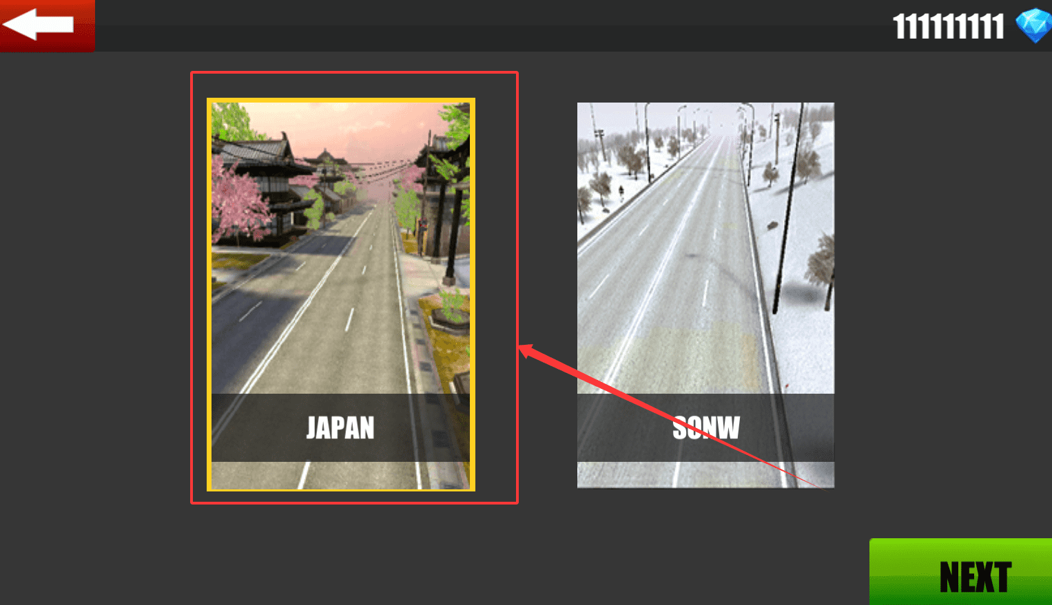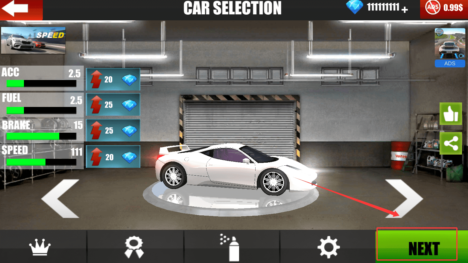 1、进入游戏后首先挑选心仪复古赛车并利用初始资源进行基础改装,通过重力感应控制系统倾斜设备实现转向操作。