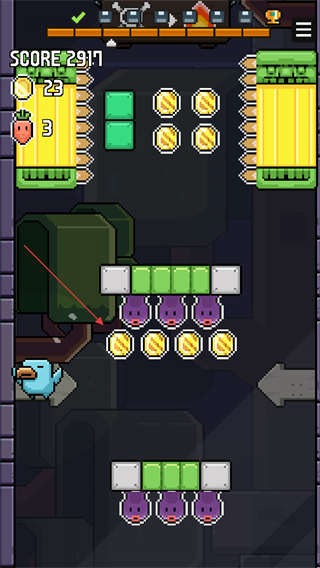 3、优先收集路径附近安全区域的金币、萝卜以提升分数;对于敌人/陷阱旁的危险区域收集物,可暂不冒险获取。