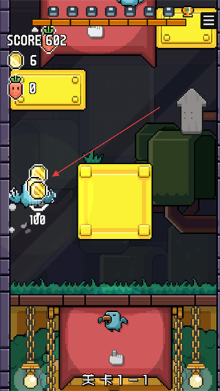 2、继续移动小鸟收集金币,积累分数推进关卡进度,完成关卡1-1。
