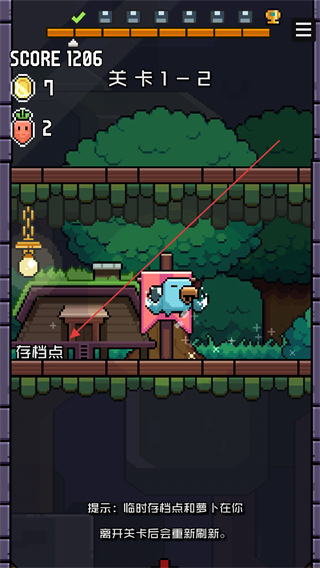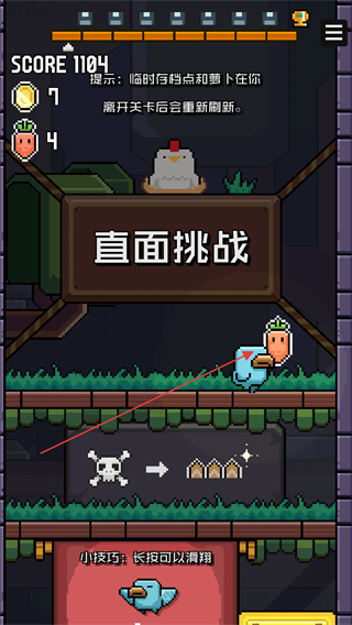 3、通过关卡后触发直面挑战,收集萝卜道具,注意临时存档提示。