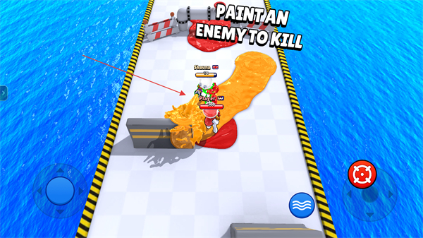 3、瞄准战场上的敌方角色,持续发射油漆覆盖对方,当敌方被油漆完全覆盖后即可将其消灭,是提升对战胜率的关键策略。