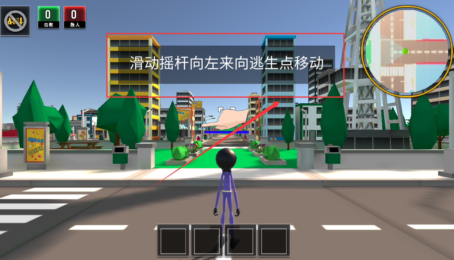 2、游戏采用直观的虚拟摇杆操控系统,在场景中会有明确的文字提示,例如“滑动摇杆向前移动或向左移动前往逃生点。
