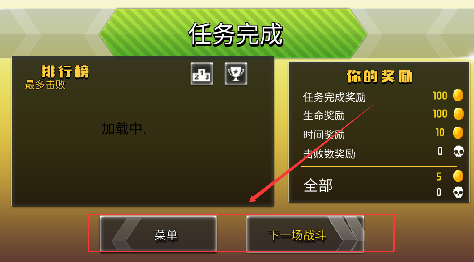 3、完成一场激战后,游戏会进入详尽的结算界面,清晰展示任务完成奖励、生命奖励、“时间奖励”等多项得分。