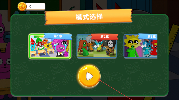 1、进入游戏后先在模式选择界面挑选对应章节,点击下方开始按钮即可进入对应关卡,不同章节对应不同的整蛊场景与挑战目标。