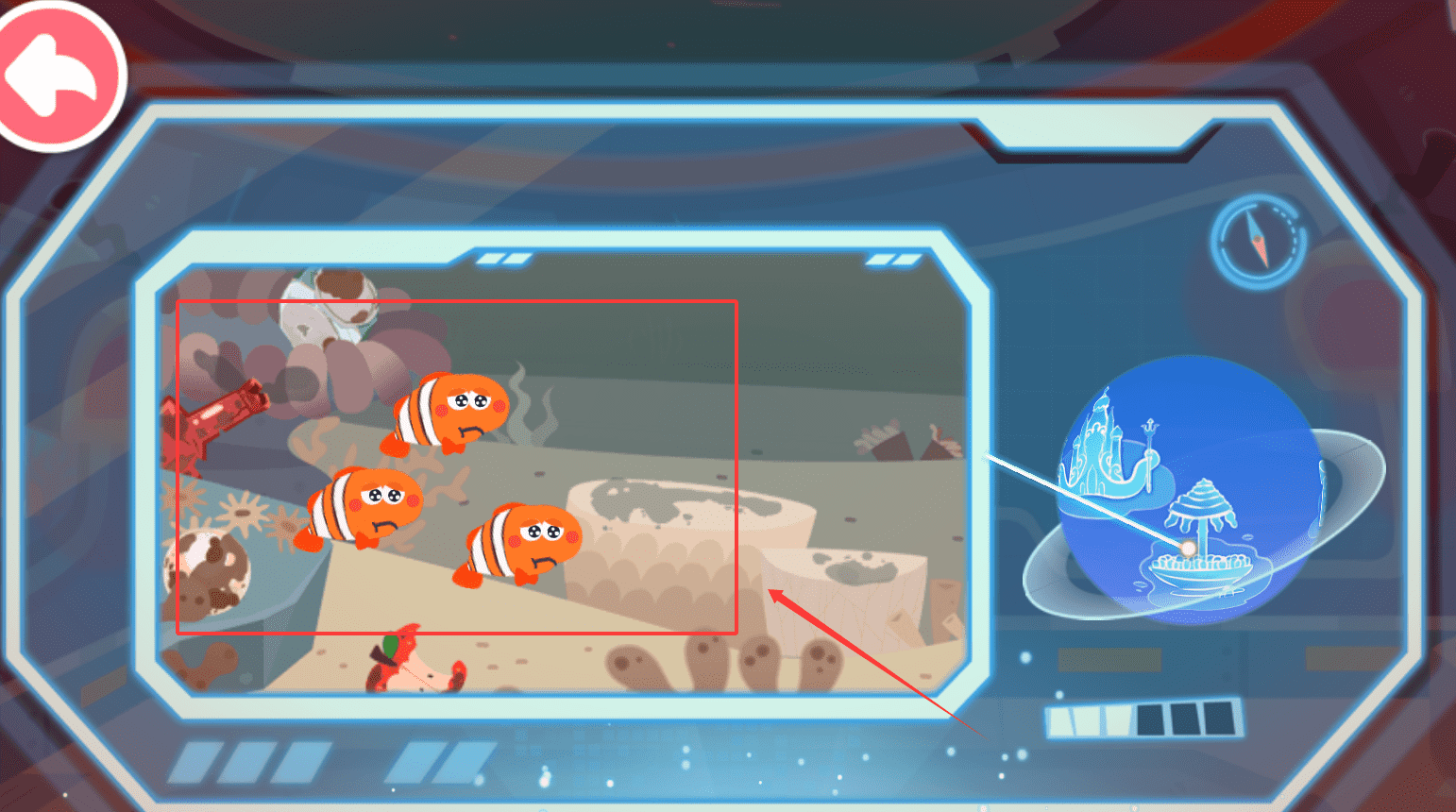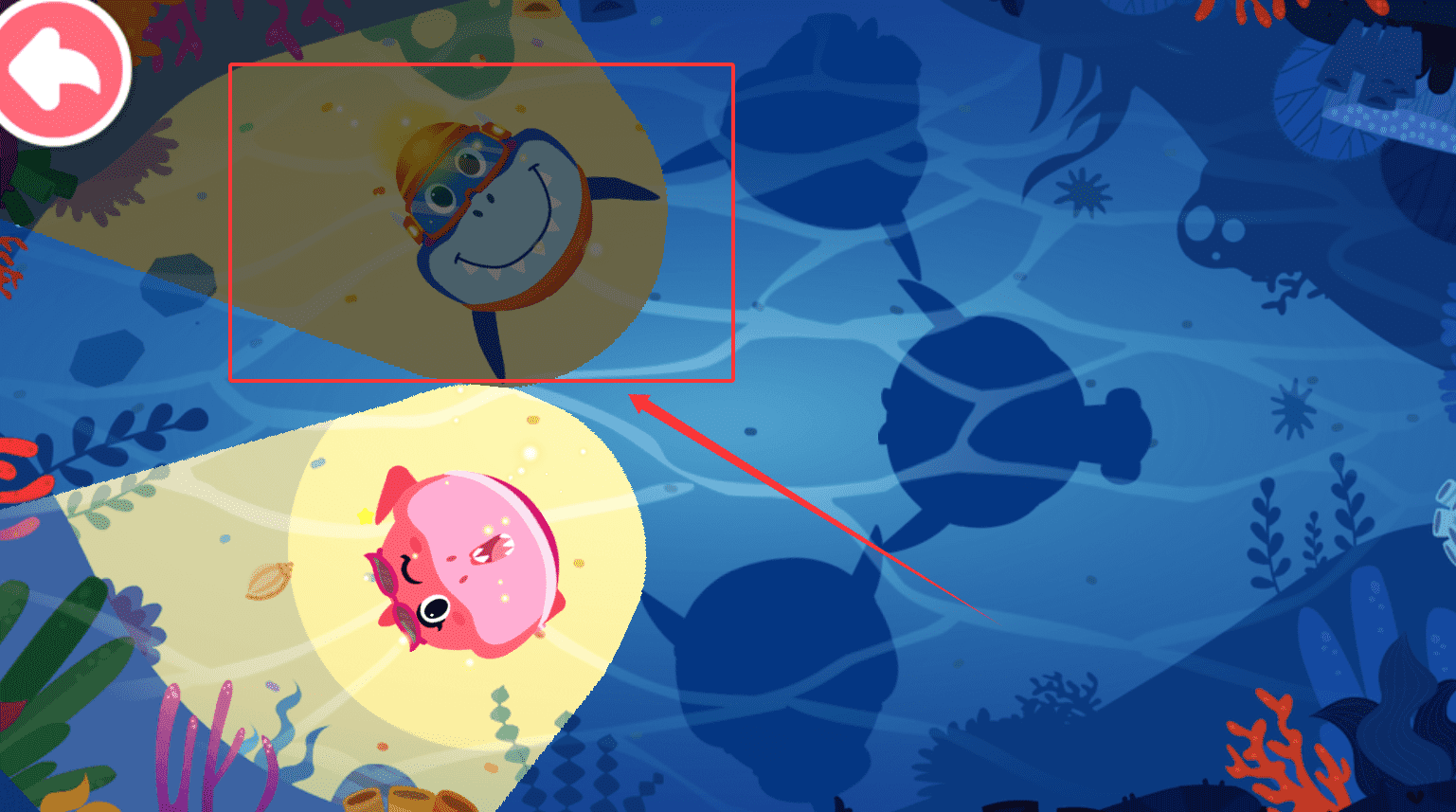 1、在保护藏宝神殿的任务中,需要先找到躲藏的章鱼,它藏匿于珍珠贝内,要求儿童集中注意力仔细观察才能发现目标。