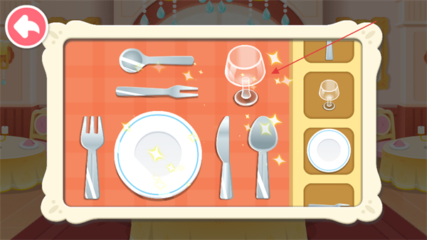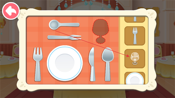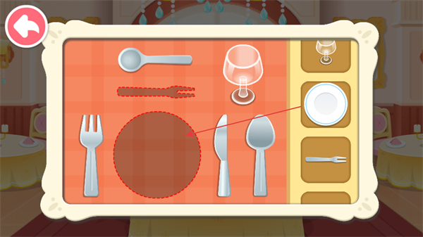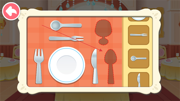 1、观察餐盘上的餐具轮廓,将对应餐具移至轮廓处匹配。