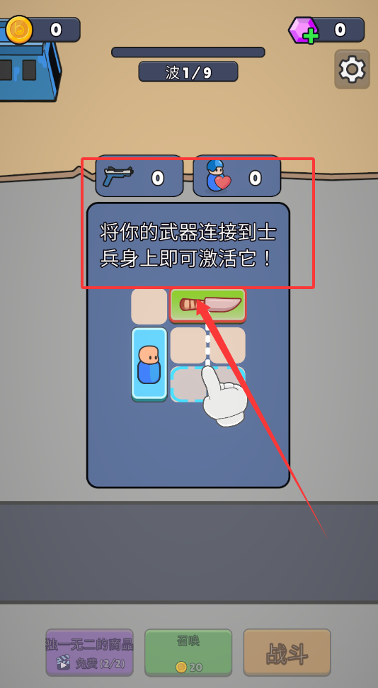 1、核心玩法始终围绕背包管理展开,需要不断收集新的士兵与武器,并将它们合理放置在有限背包空间中,对不同功能单位。