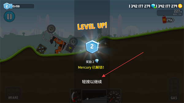 3、若车辆损坏,会触发关卡升级,解锁新内容如Mercury。