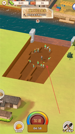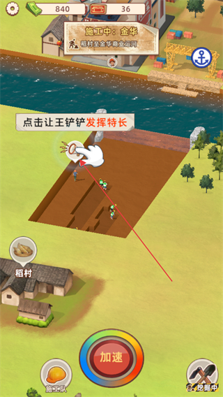 3、加速生效后,工人持续作业,等待加速倒计时结束,推进运河挖掘进度。