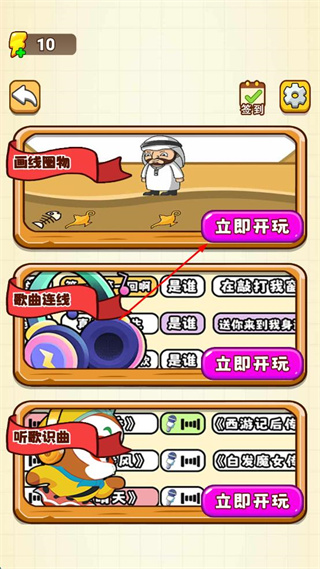 2、在主选择界面里,点击“画线圈物”板块对应的紫色“立即开玩”按钮,进入该关卡。