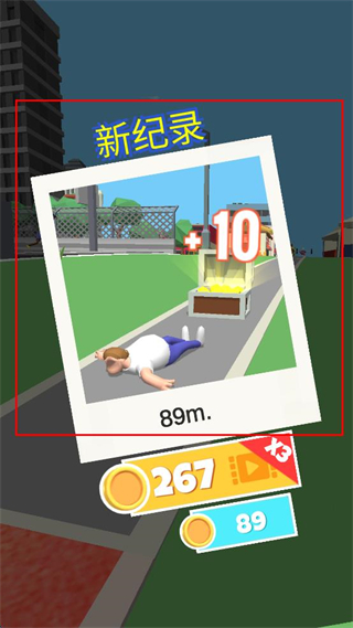 4、滑行结束后出现结算界面,查看新纪录及获得的金币,完成当前局的流程。