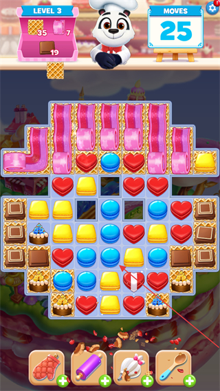 除基础三消外,四个、五个曲奇的直线组合及“L”“T”形组合,会生成不同功效的特殊道具,需根据关卡障碍与目标,规划最优组合方式,策略性十足。