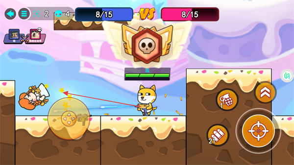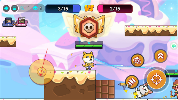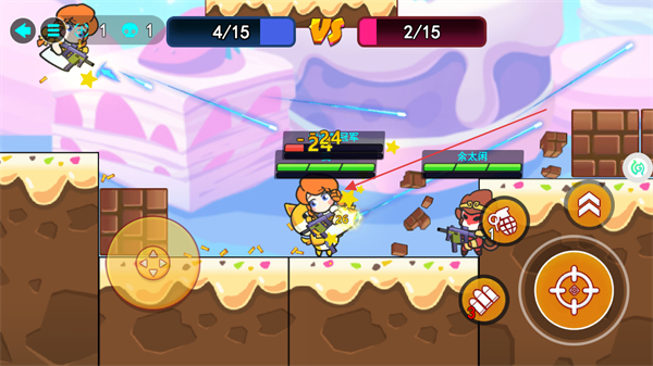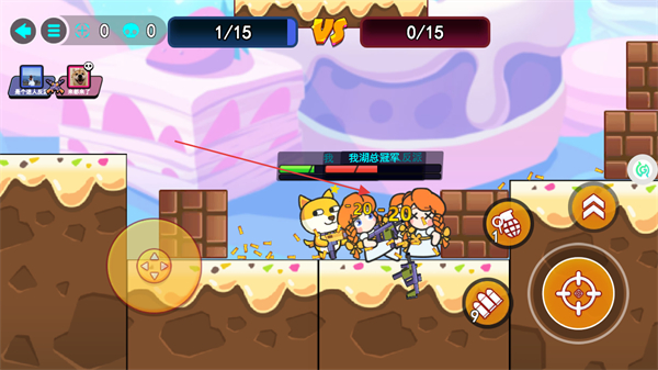 1、操控角色移动,点击攻击键攻击敌方,积累击杀数推进对战进度。