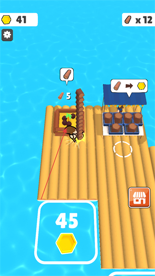 4、通过收集-售卖-升级的循环,逐步提升资源产出与收益效率,扩展木筏小岛的规模。